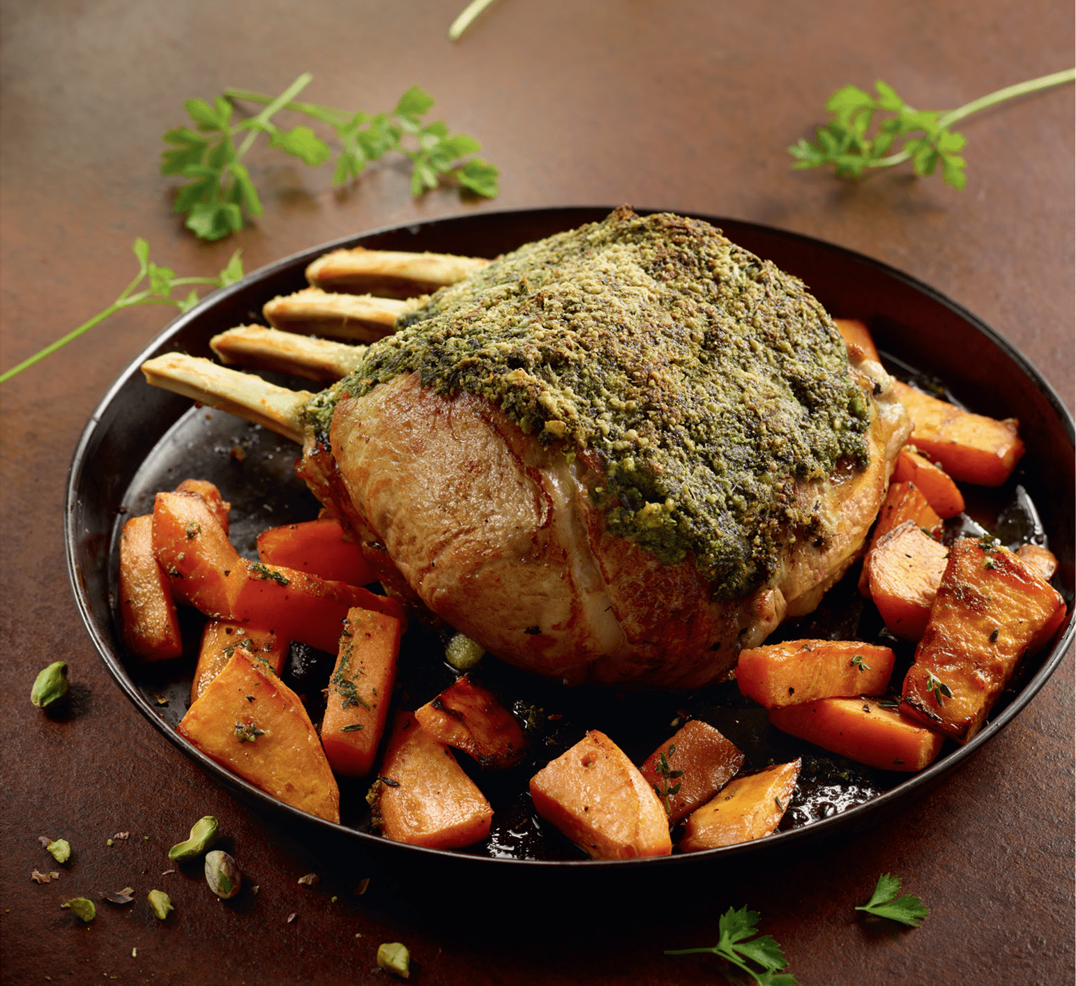 30 minutes avant de démarrer la recette, sortez le carré de veau du réfrigérateur et laissez-le revenir à température ambiante.