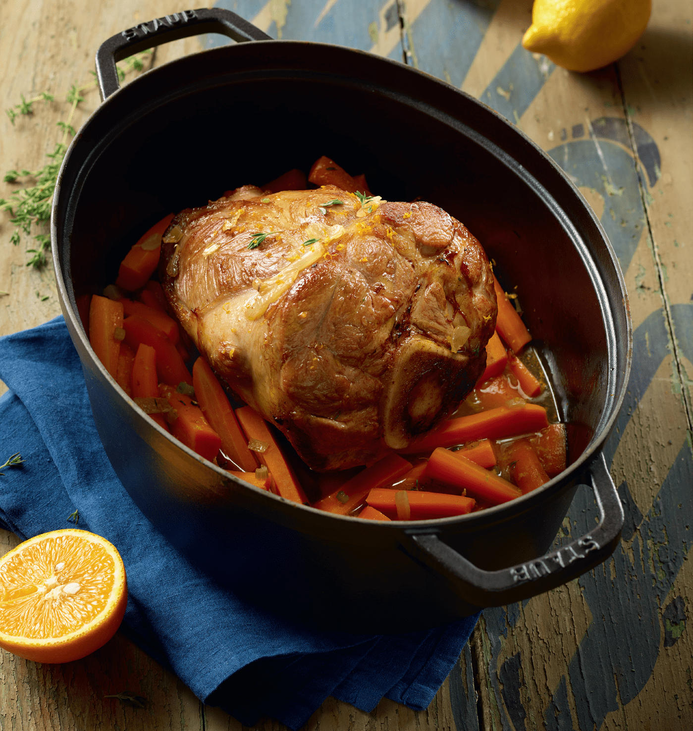 Jarret de veau confit aux agrumes